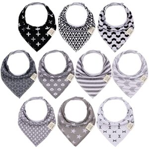 10-Pack Organic Baby Bandana Bibs - Organic Cotton Bandana Bibs for Boys, Girls - Super Absorbent Bandana Drool Bibs - Teething Bibs - Baby Bibs for Infant, Toddler (MONOS)