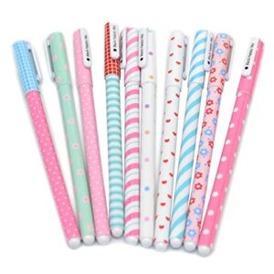 Fluent Writting Pen, 10 Pcs 0.38 mm 10 Color Black Ink Rolling Ball Cute Gel Ink Pen for Student and School Office Supplies (A)